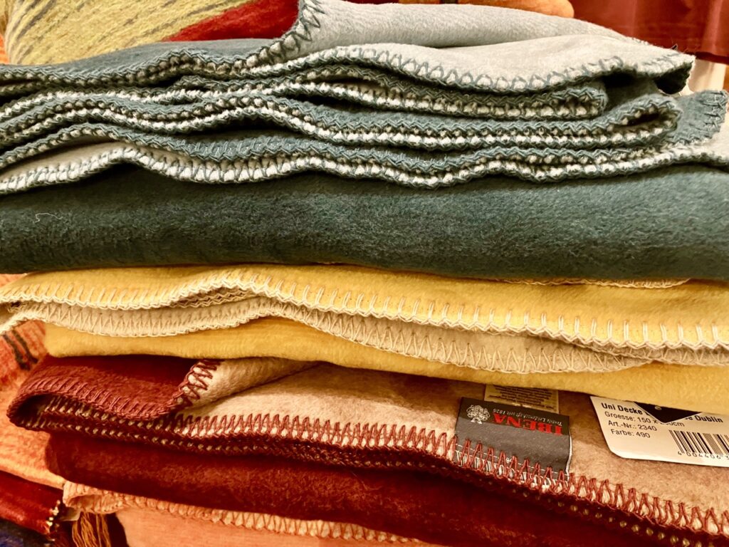 Zwei Seiten könnte man dem Winter 2025/26 zuschreiben. Die unangenehme Seite lässt uns allzu häufig frösteln und frieren und unter dem stimmungsdämpfenden Lichtmangel leiden. Die andere Seite ist pures Glück: endlich gibt es, anstelle monatelang ausgedehnter November-Trübsal, wieder einmal einen „richtigen“ Winter mit Dauerfrost und Schnee, wie wir es „von früher“ kennen. – Zwei Seiten haben auch unsere Doubleface-Decken. Allerdings sind sie dem Winter insofern überlegen, als sie ausschließlich Freude bereiten. Die strapazierfähigen, pflegeleichten Stoffe sorgen für pure Gemütlichkeit und Wärme. Die Decken haben eine pastellige und eine starkfarbige Seite, die Schlichtheit und zugleich dekorative Eleganz vermitteln. Und: sie sind – erst recht in diesem „richtigen“ Winter – ausgesprochen kuschelig. Darüber hinaus gehören zum Sortiment von Baptistas Laden natürlich auch weiterhin die bunt gemusterten, vielfarbigen Modelle der Firma Ibena.